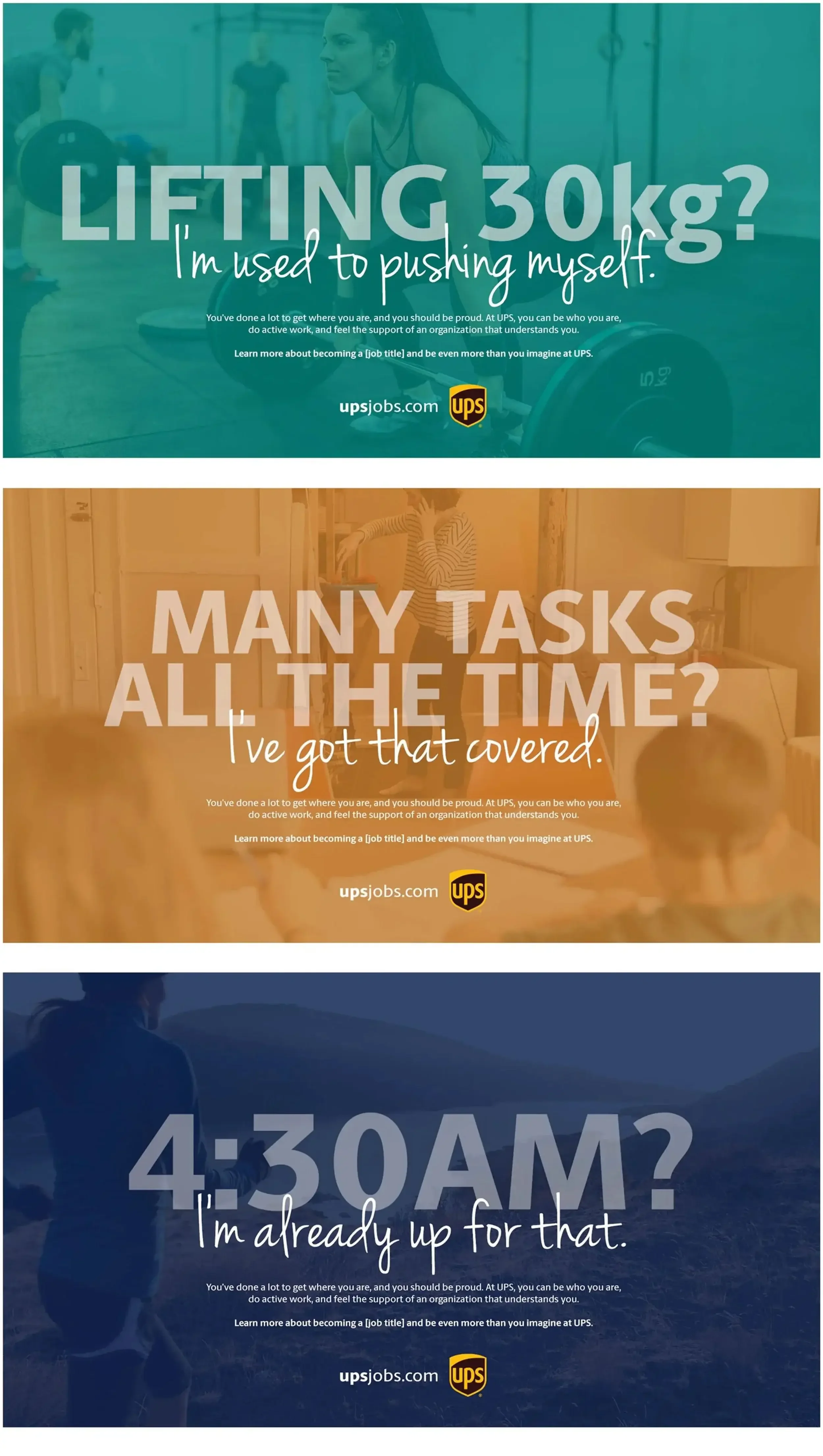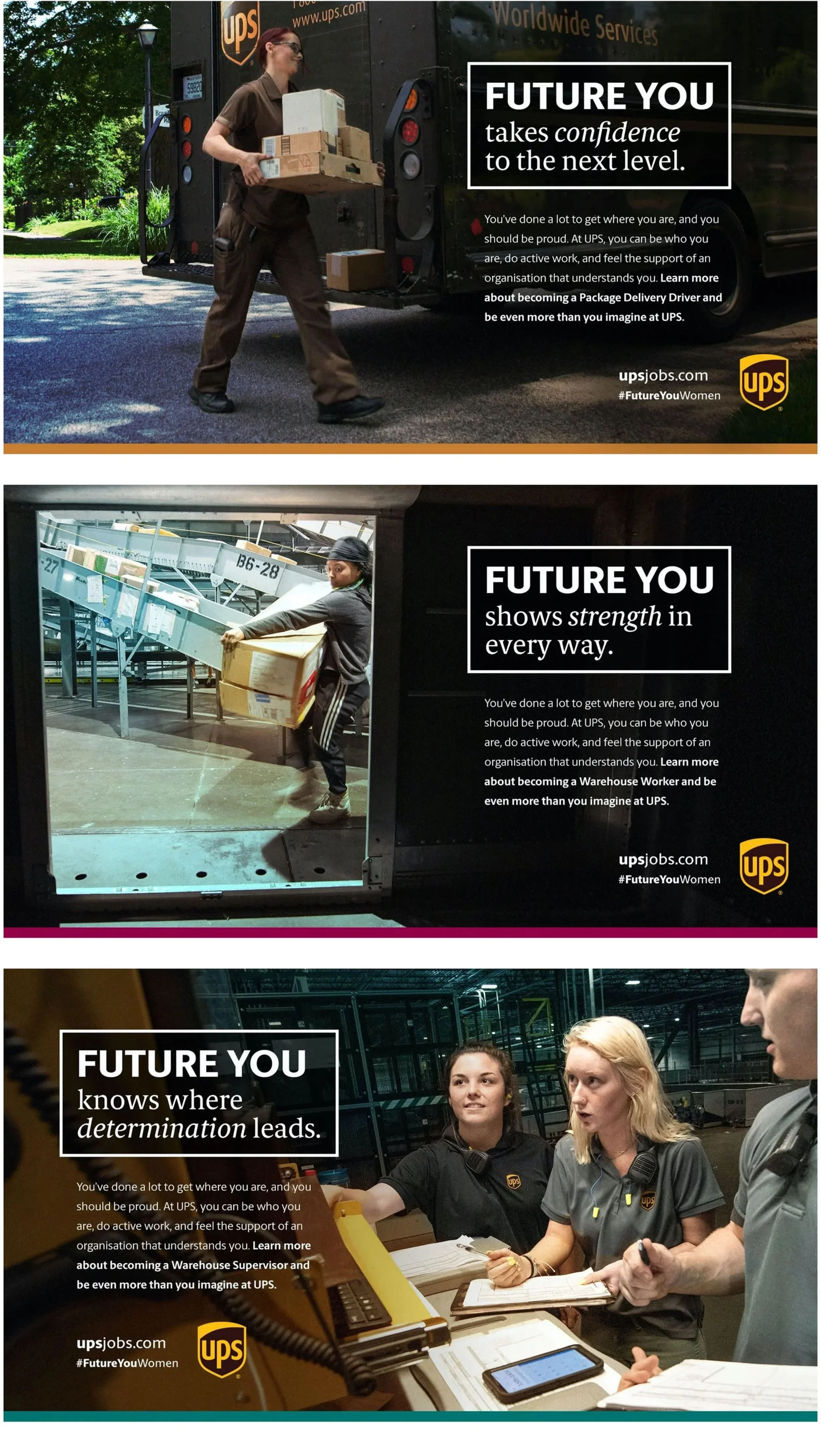 UPS UK needed a recruitment campaign that better connected with women candidates for operational roles in a UK market where brand awareness was lower than in the US. The work had to feel culturally relevant and locally grounded, while still aligning with global employer brand featured on the career site experience this campaign would drive to.