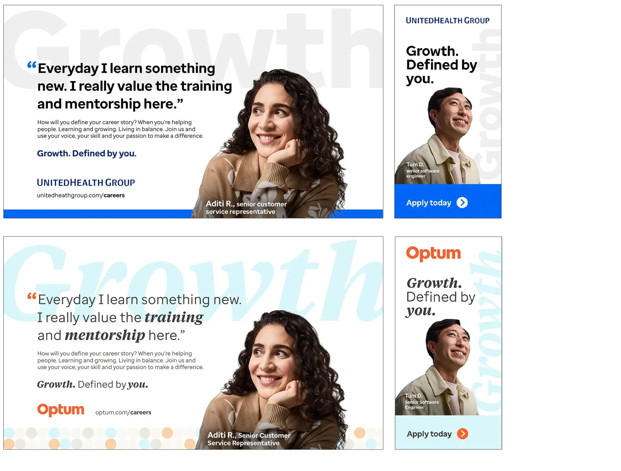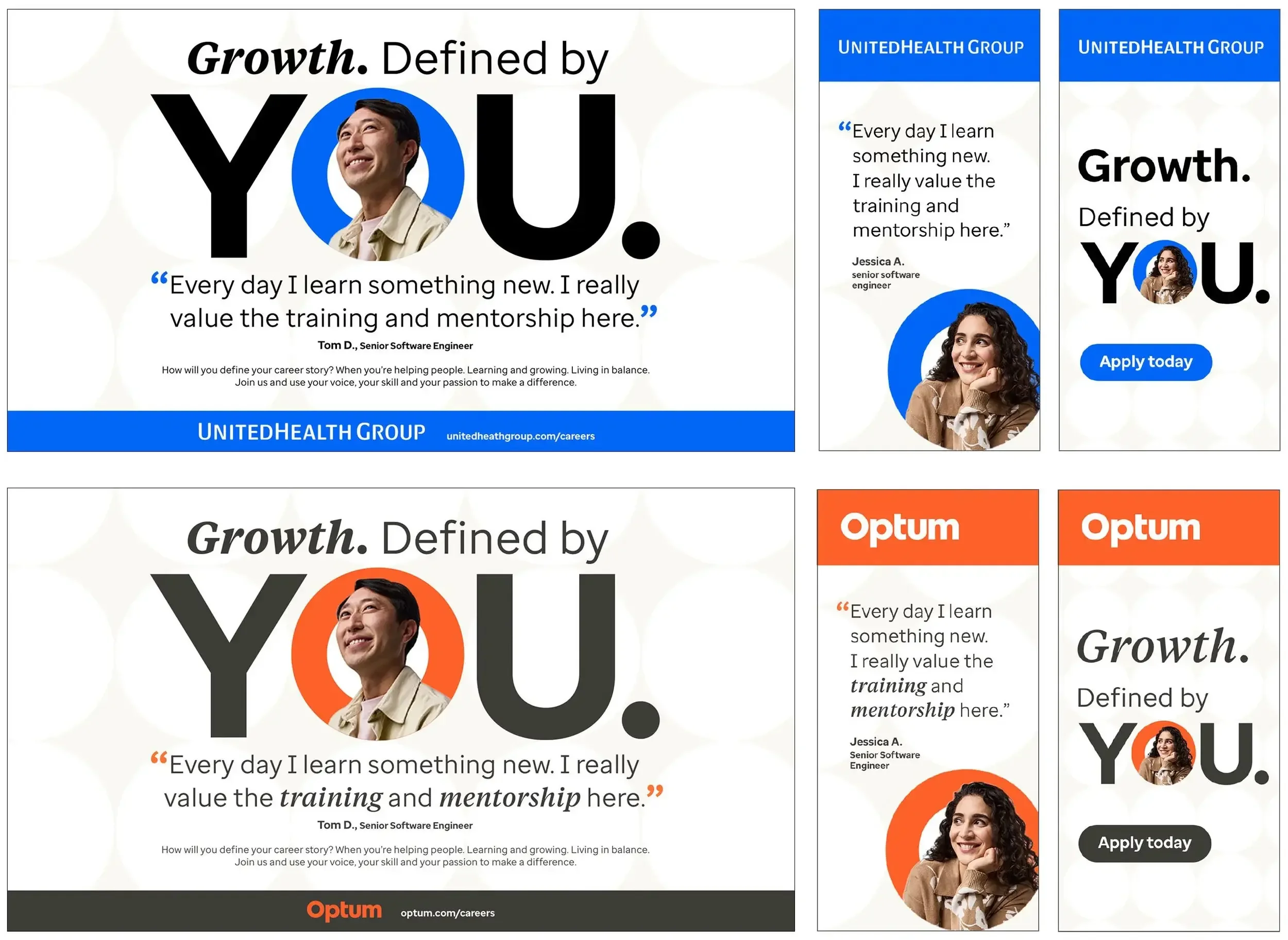 UnitedHealth Group needed a unifying employer brand platform to support high-volume recruitment across multiple brands and audiences, while remaining flexible enough to accommodate fast turnarounds. The work had to scale efficiently without losing authenticity or blurring each brand’s distinct identity to stand out in market.