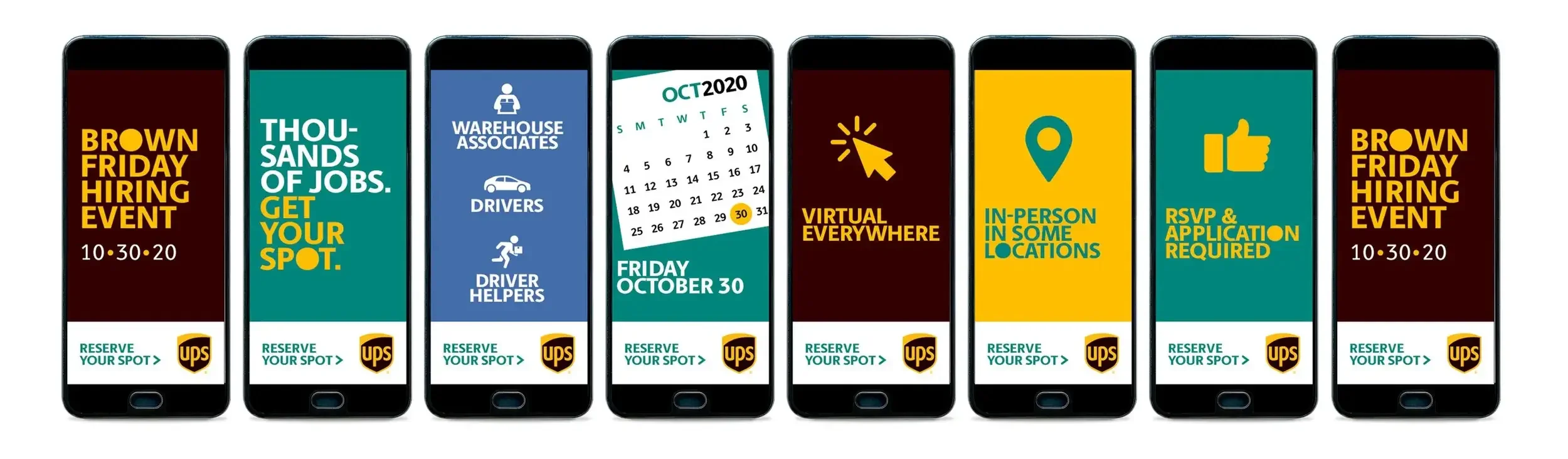 UPS needed a high-visibility seasonal recruitment campaign to support a nationwide, one-day, in-person hiring event, with a goal of filling 100,000 roles across multiple markets. The work had to move fast, scale nationally, and communicate urgency and clarity in a highly competitive hiring environment.