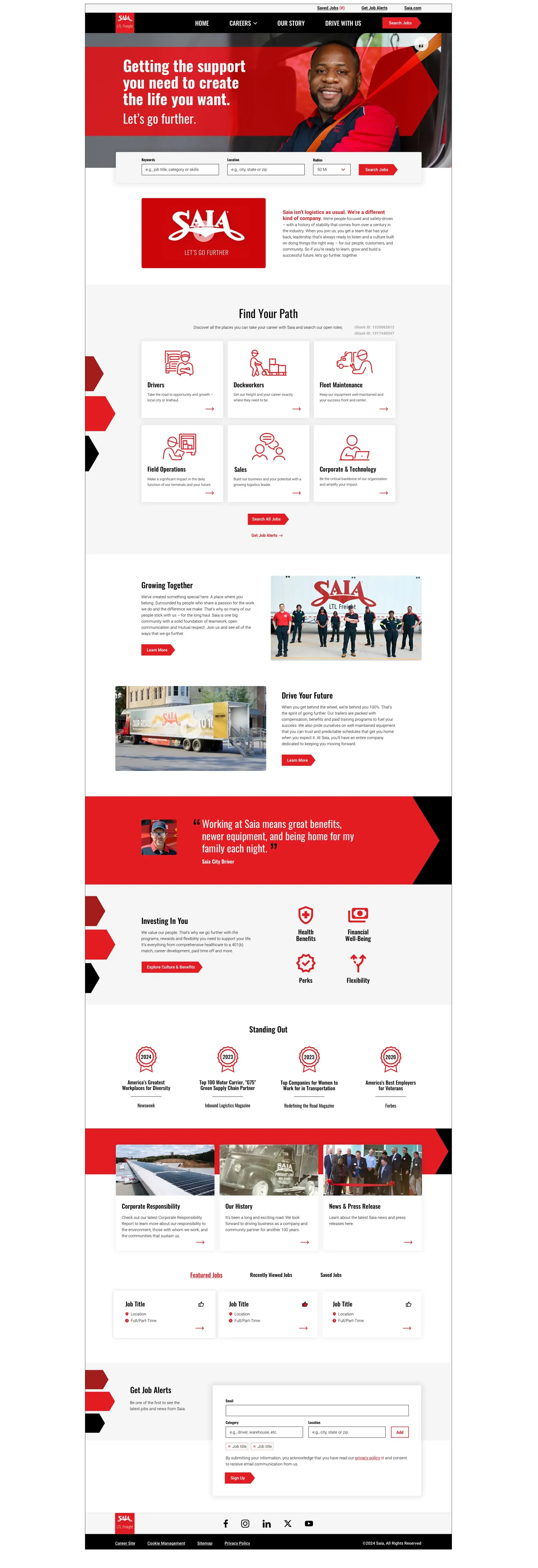 The platform was applied across a redesigned career site and supporting recruitment materials. Its systemized approach enabled consistent execution across content teams and continues to support Saia’s ongoing hiring efforts across roles and regions.