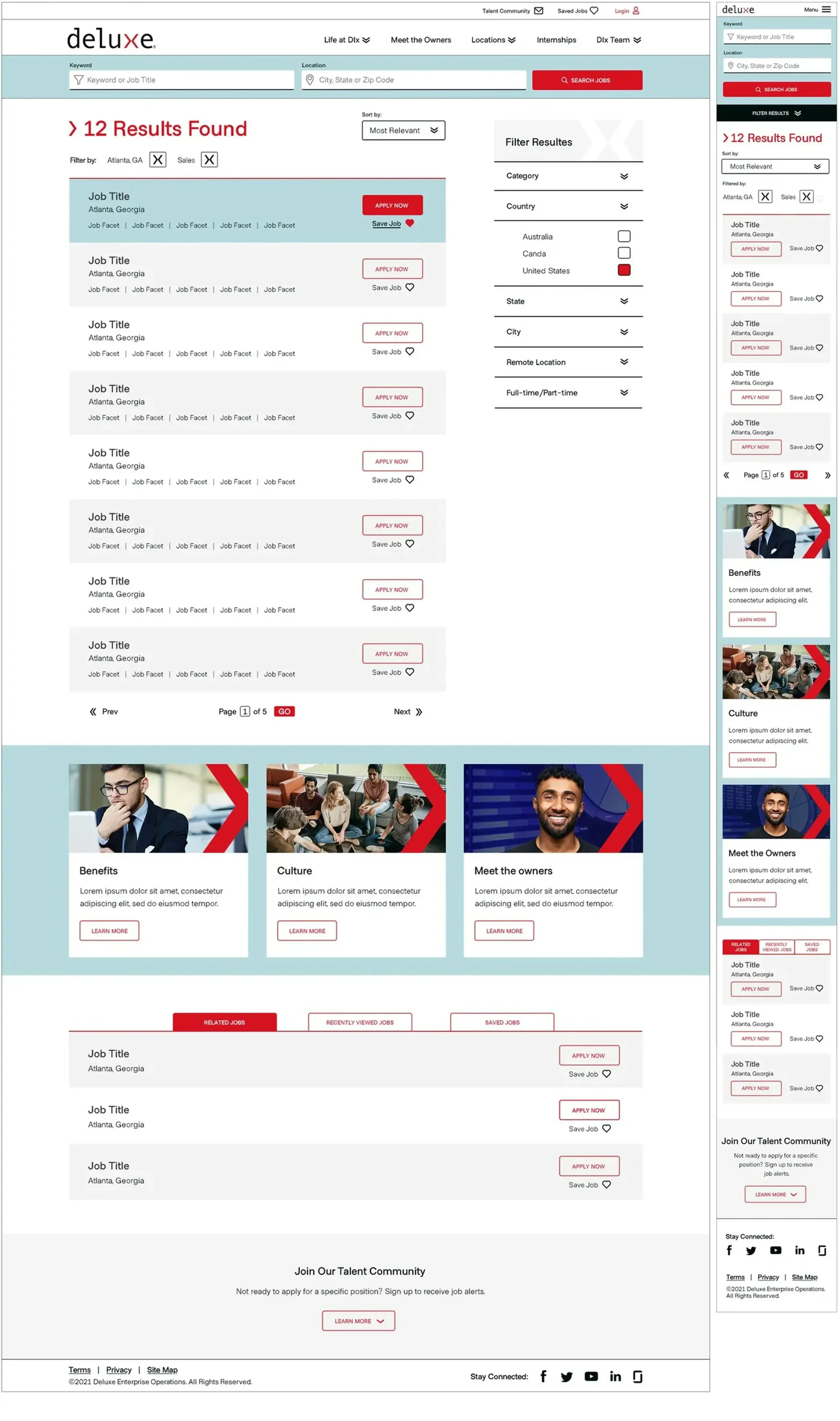 Desktop and mobile mockups demonstrating how the employer brand translated into a cohesive, responsive career site experience.