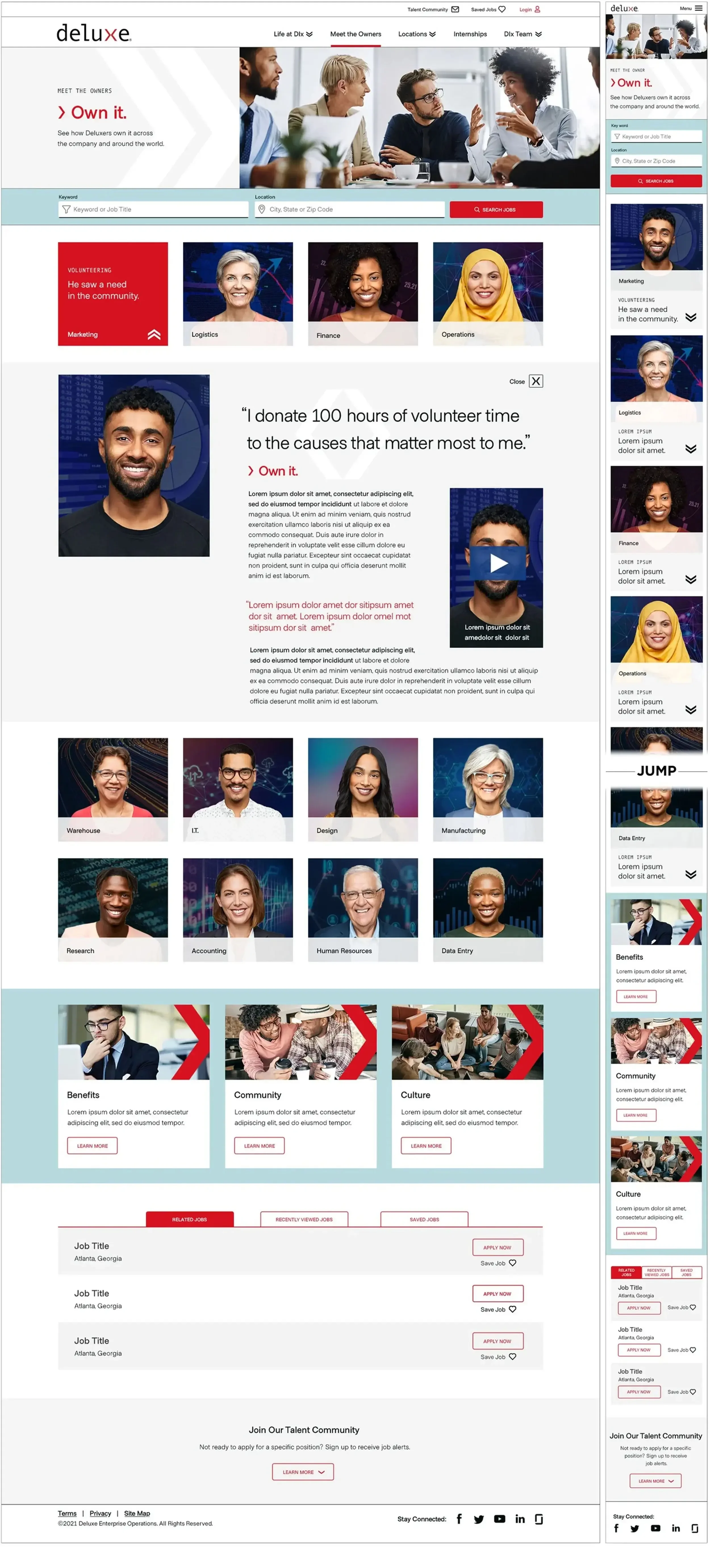 Landing page featuring employee stories that bring the “Own It” message to life through personal perspective. Real employees were used at the time of launch.