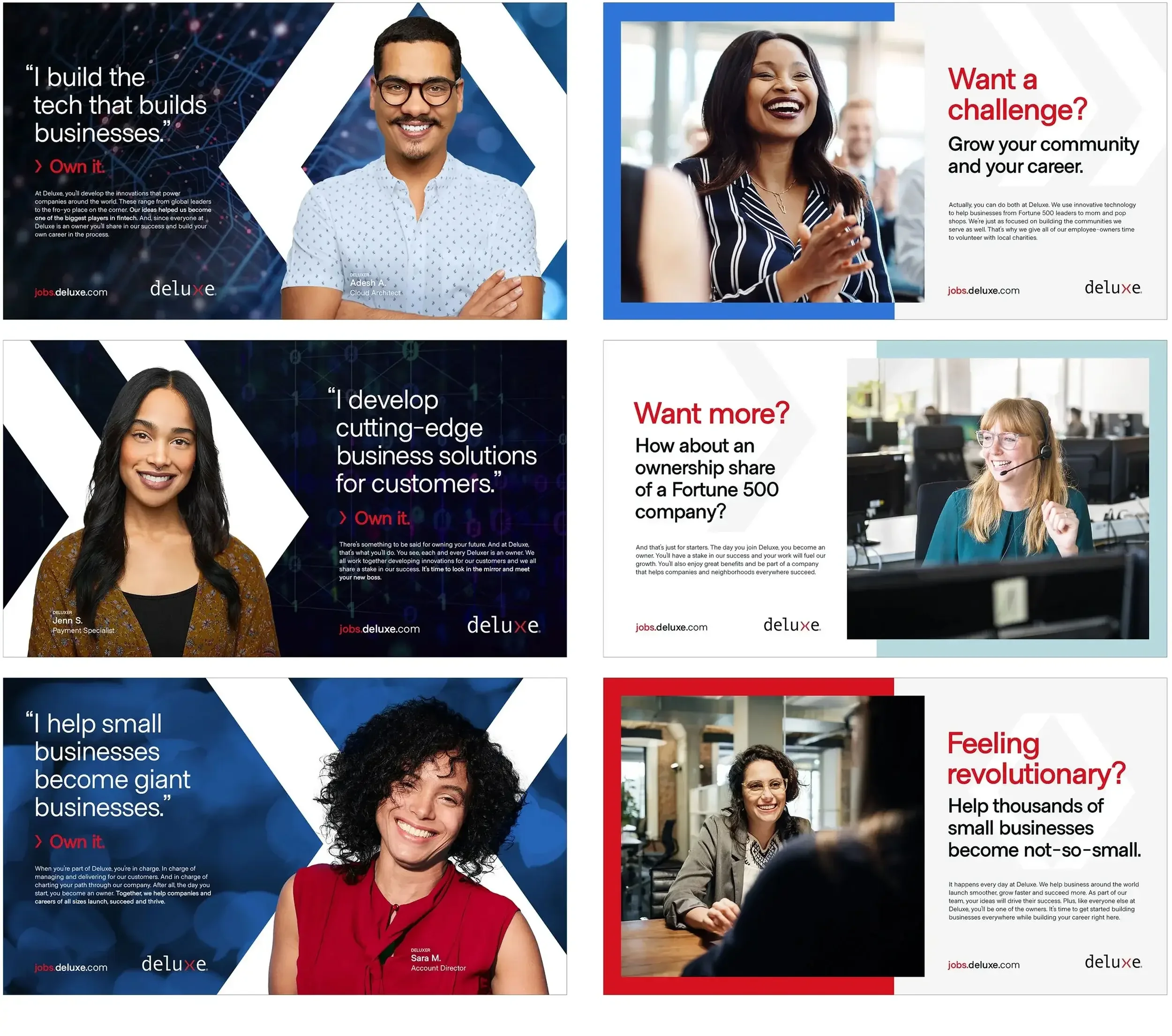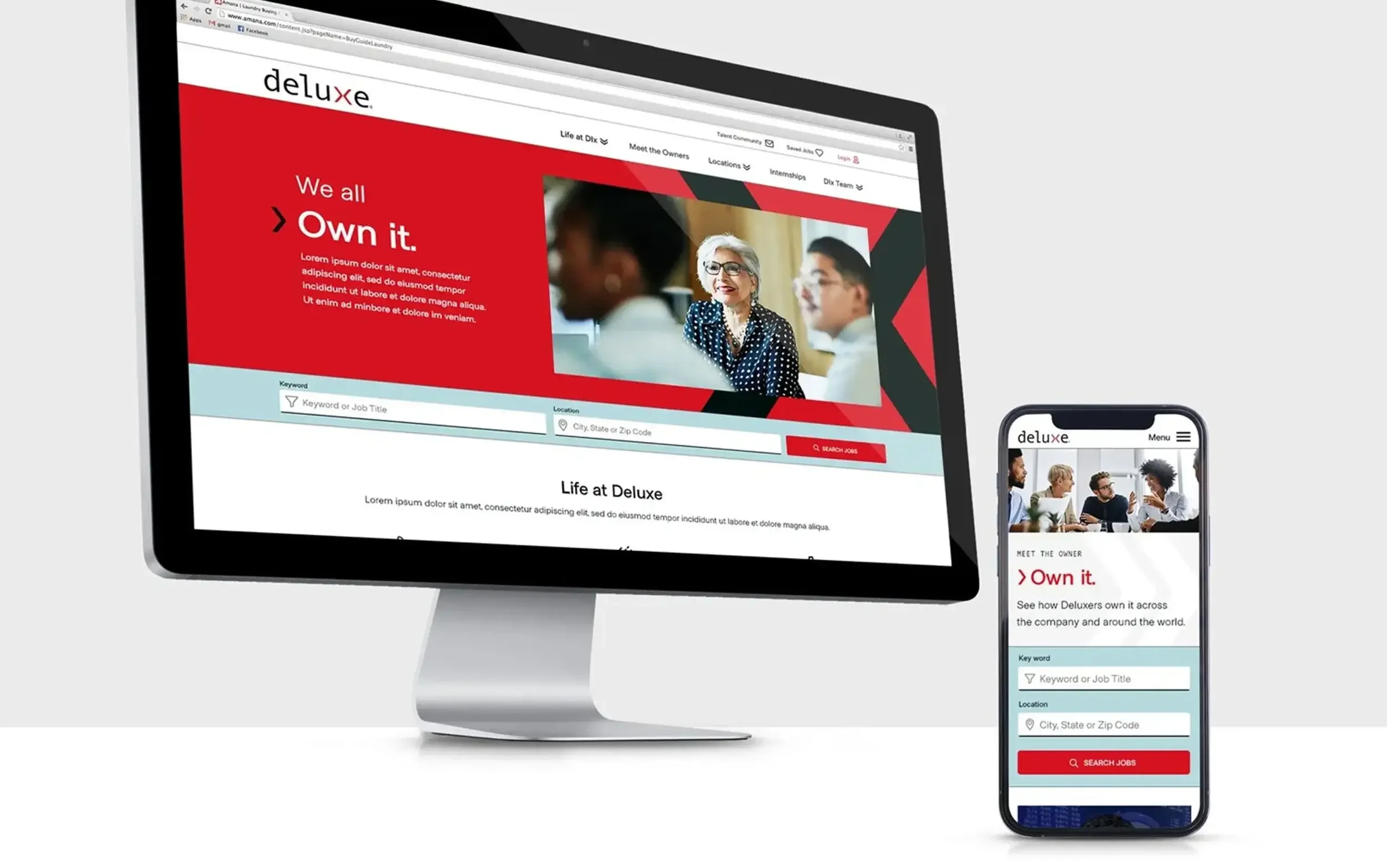 Deluxe needed an employer brand platform and career site experience that could support brand awareness and attract the right candidates. The existing employer story lacked clarity and a big idea that connected all their recruitment materials together.
