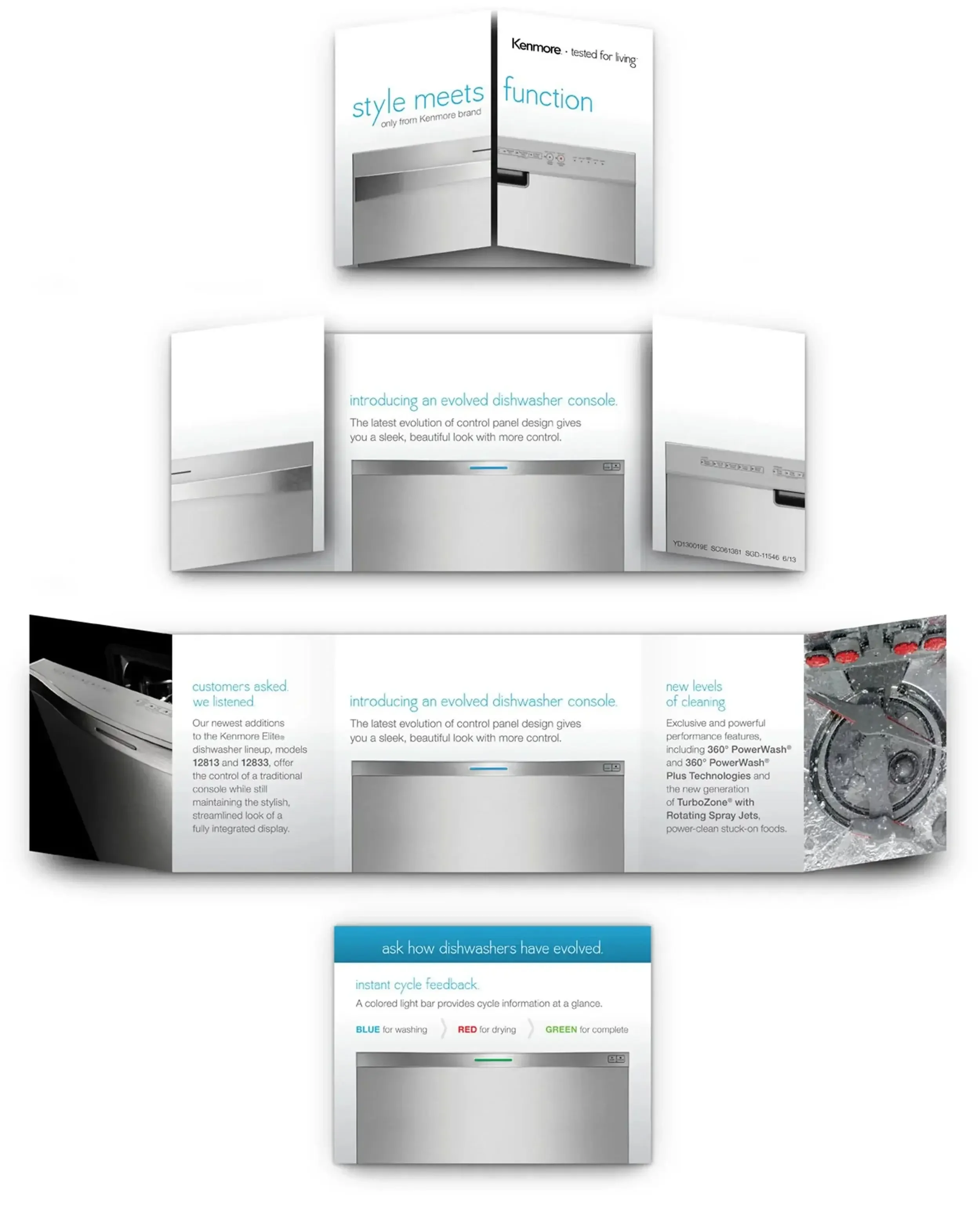 Designed to fit inside sales associate lanyards for quick reference on the sales floor. The intuitive fold-out format visually explains how standard models, hidden controls, and console elements come together to create the new hybrid design.